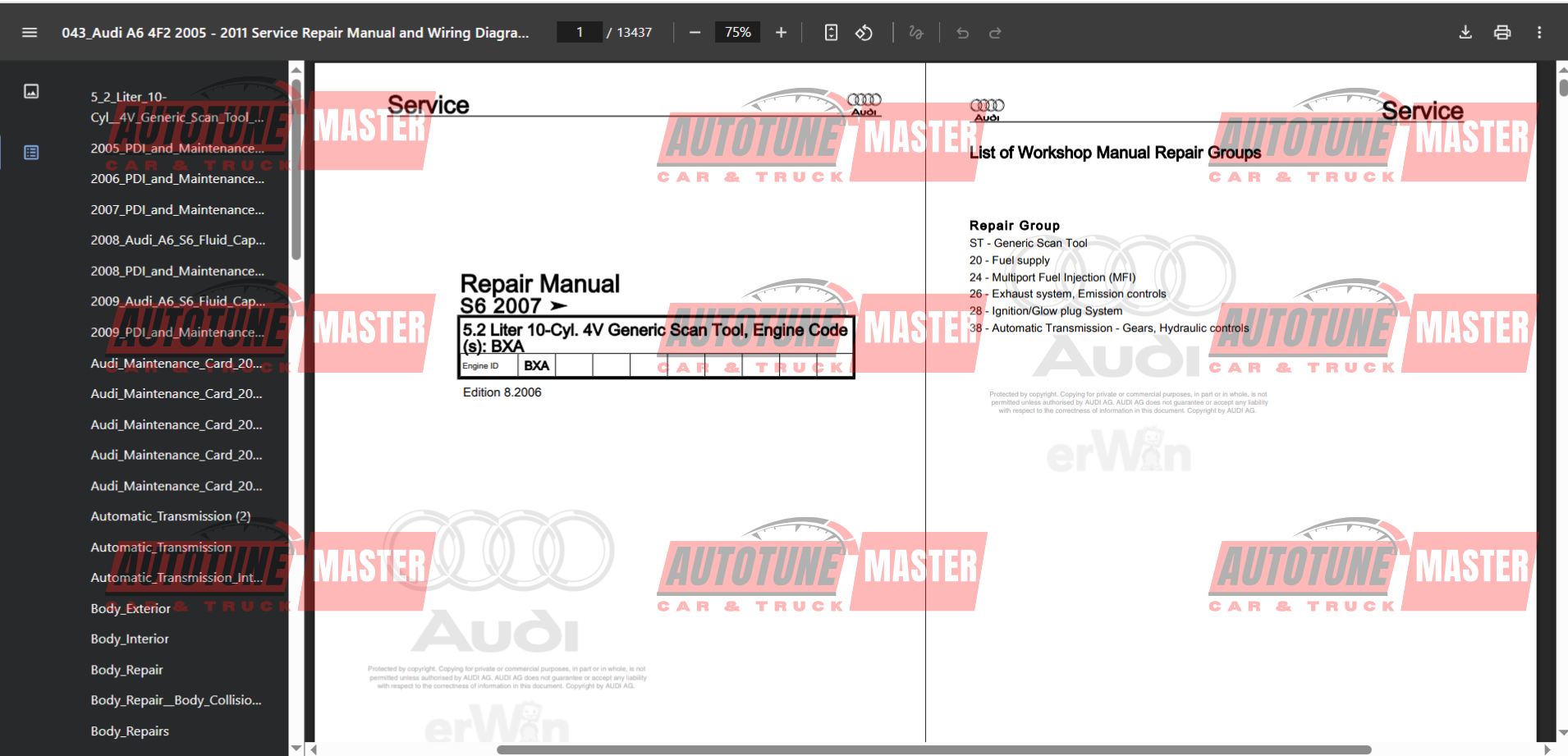 - Manuals name: Audi A6 (2005 - 2011) 4F2 Service Manual and Wiring Diagram