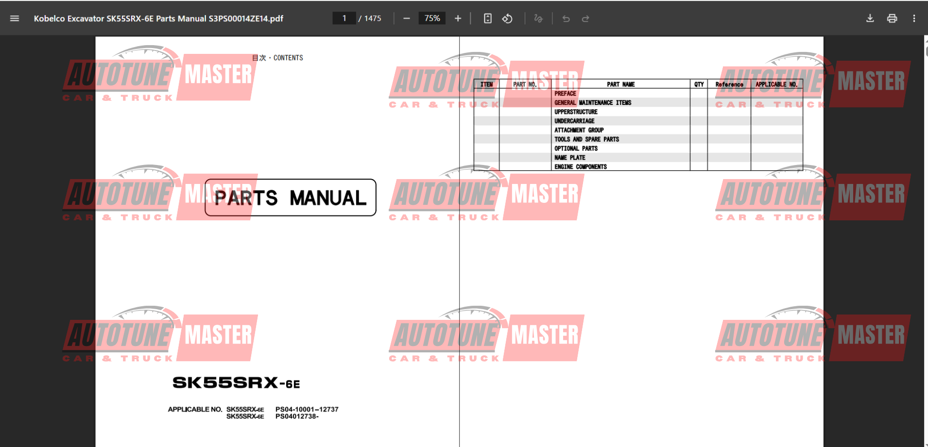 Kobelco Excavator SK55SRX-6E Part Manual