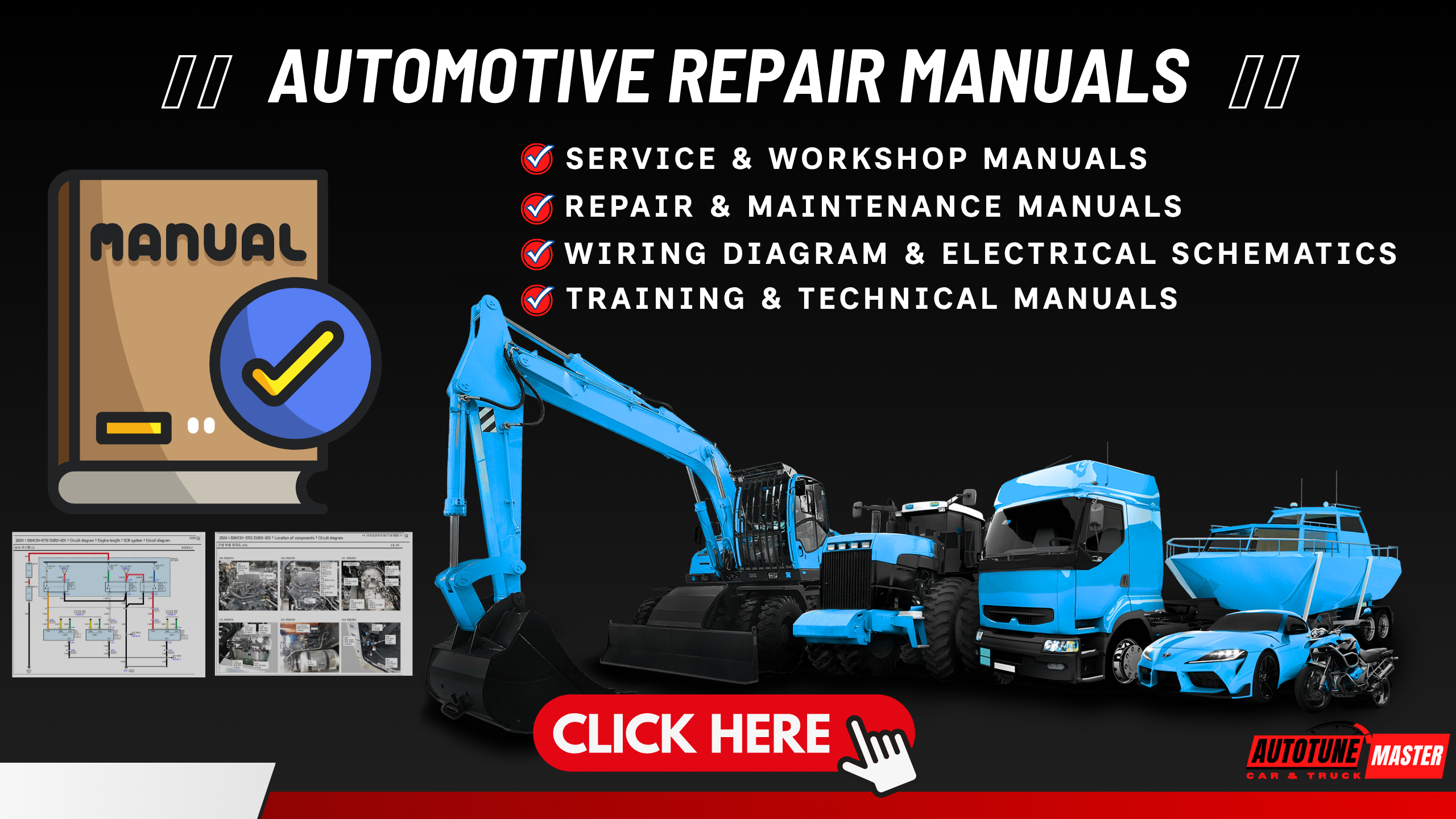- Repair manuals & technical documentation for for cars, trucks, buses, agricultural, and construction machinery